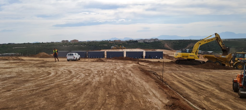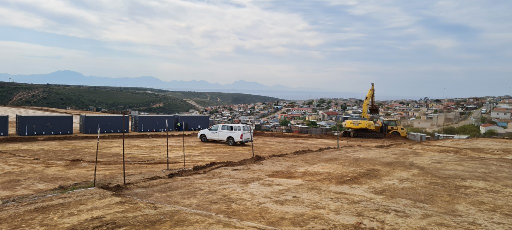 The Contractor, Entsha Henra (Pty) Ltd is currently busy with the construction of the services for the Temporary Relocation Area (TRA) and the delivery of the first containerised ablutions facilities has taken place on site. Construction has also started in the Transand Camp Informal Settlement area. See the photos below illustrating the latest progress: