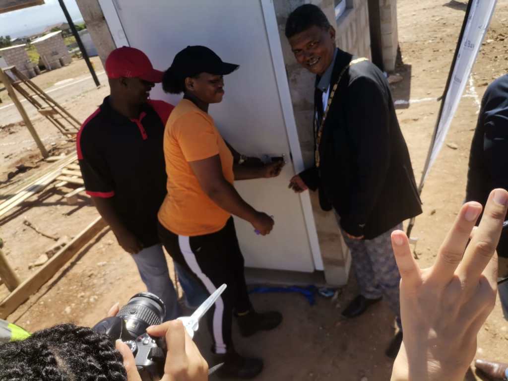 Today the Mossel Bay UISP project reached a big milestone with the formal handover of the first enhanced serviced sites at a Mayoral Ceremony held this morning. The Mossel Bay Municipality Deputy Mayor Cliffie Bayman attended the ceremony and formally handed over a completed enhanced serviced site to a lucky beneficiary.